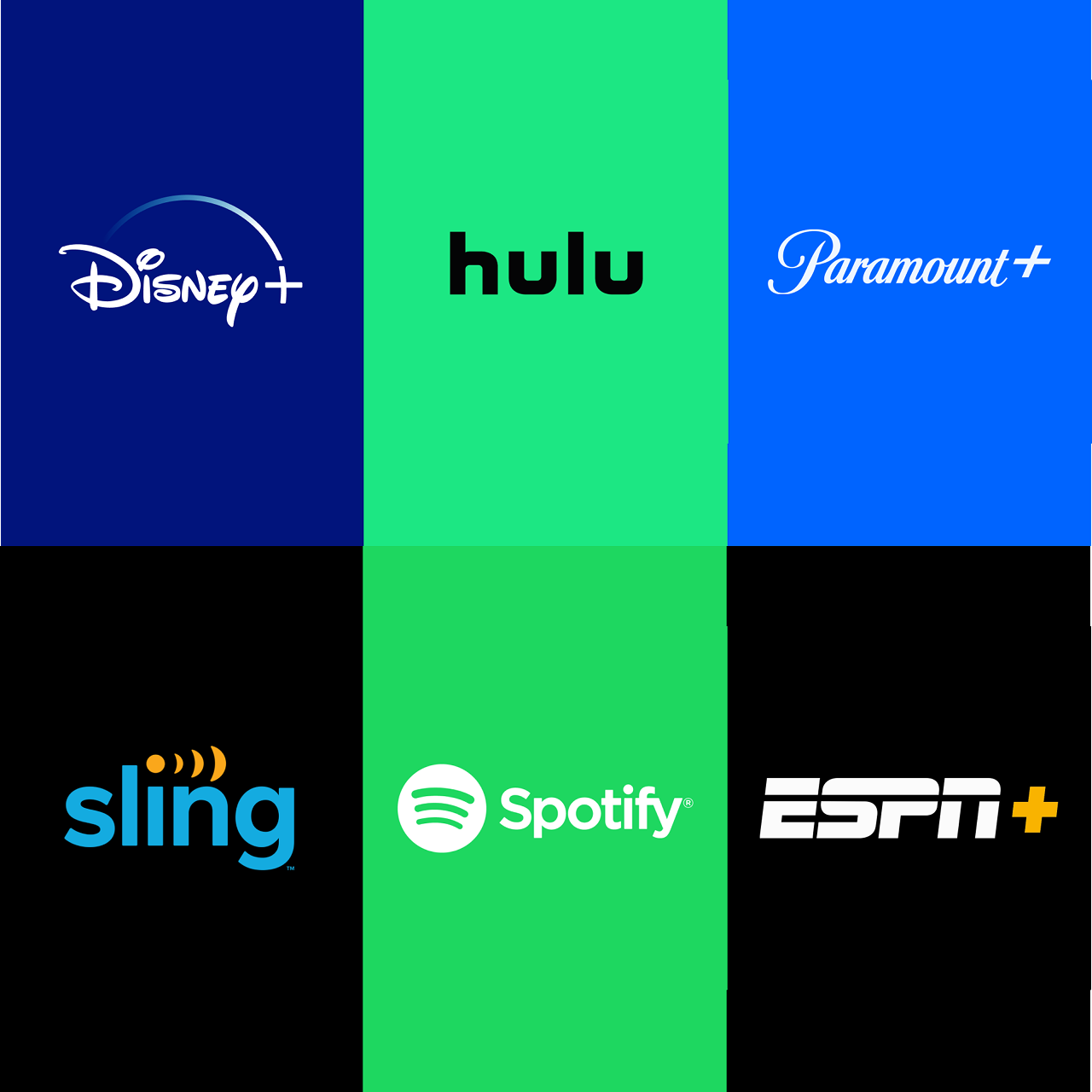 This bundle includes the following plans: Hulu (With Ads) + Live TV, Disney+ (With Ads) and ESPN+ (With Ads), Spotify Individual, Sling TV Orange, Paramount+ Premium. GET 12 months of premium streaming and entertainment. Enjoy a combined selection of movies, series, live TV, and music from the included plans at one bundled price.